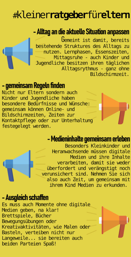 Die Corona-Krise hat Magdeburg fest im Griff. Um auch die aktuellen Situationen im Alltag bestmöglich zu meistern, Konflikte und Harausforderungen gerade in Bezug auf Medien und Medienzeiten zuhause zu umgehen, hier ein paar hilfreiche Tipps für Eltern, Großelten, Betreuer*innen und all denen, die gerade Kinder und Jugendliche rund um die Uhr hüten und pflegen!